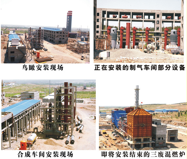 項目一期工程與2008年6月開工建設以來,目前項目廠區圍墻及主干道路網路基本建設已全部完成;尿素主廠房、二氧化碳壓縮機廠房施工已完成90%;造氣樓主體施工已完成,外墻防腐施工完成90%;三廢混燃爐基建施工完成;余熱發電主體施工已完成;凈化區、合成廠房、壓縮機廠房、終端污水處理場等工段施工已完成100%;余熱發電發電設備安裝, 安裝前期準備工作;脫硫塔及煙囪安裝已完成100%;造氣爐安裝已完成10%;脫硫塔、循環槽、再生槽等非標設備已制作完成80%;脫碳設備吊裝就位70%、高壓設備安裝完成30%;制氣設備安裝就位、終端污水設備就位;混燃爐、除塵器制作安裝完成20%;目前主要安裝風機、三廢混燃爐、吊車用行車、基建收尾工程也在緊張進行中。